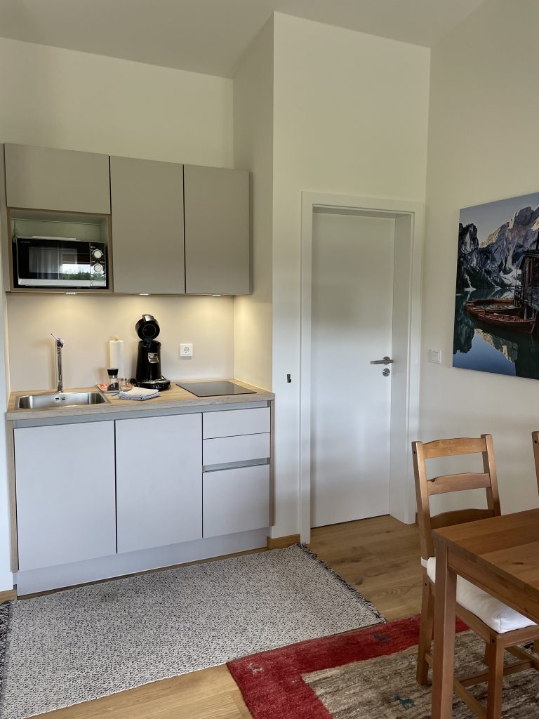 Modernes Ferienapartment für 2 Personen im ökologischen Holzhaus am Starnberger See. Die 50qm große Wohnung mit seperatem Eingang verfügt über eine großzügige Wohnküche mit Blick nach Süden auf Waldrand, Berge und See, ein Schlafzimmer und ein Bad. In ca. 10 bis 20 Min. erreicht man zu Fuß den Bernrieder Naturpark und das Seeufer mit zahlreichen verträumten Badebuchten. Auf dem Grundstück steht ein eigener Parkplatz zur Verfügung. Für Fahrräder gibt es Abstellfläche.